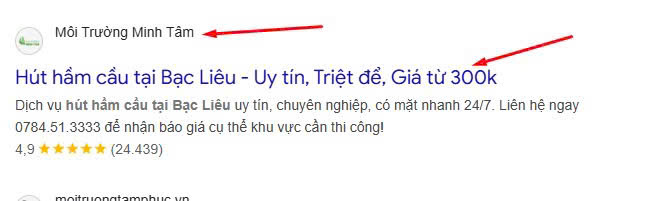 Bước 2: Gõ tìm từ khóa Hút hầm cầu tại Bạc Liêu Minh Tâm
