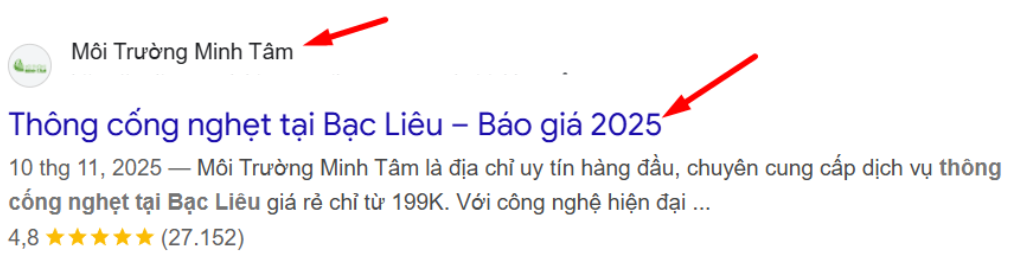 Bước 2: Gõ tìm từ khóa Thông cống nghẹt tại Bạc Liêu