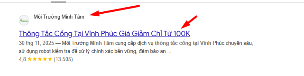 Bước 2: Gõ tìm từ khóa Thông tắc cống tại Vĩnh Phúc minh tâm