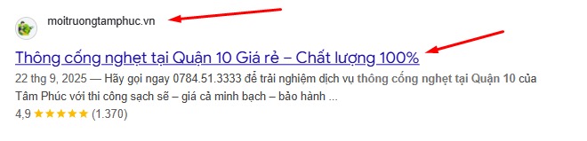 Bước 2: Gõ tìm từ khóa thông cống nghẹt tại quận 10
