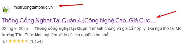 Bước 2: Gõ tìm từ khóa thông cống nghẹt tại quận 4