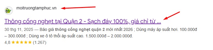 Bước 2: Gõ tìm từ khóa thông cống nghẹt tại quận 2