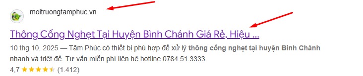 Bước 2: Gõ tìm từ khóa thông cống nghẹt tại huyện Bình Chánh