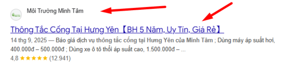 Bước 2: Gõ tìm từ khóa Thông tắc cống tại Hưng Yên minh tâm