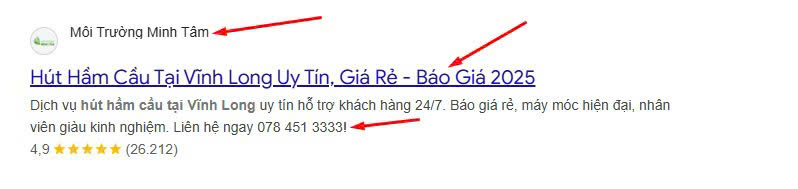 Bước 2: Gõ tìm từ khóa Hút hầm cầu tại Vĩnh Long